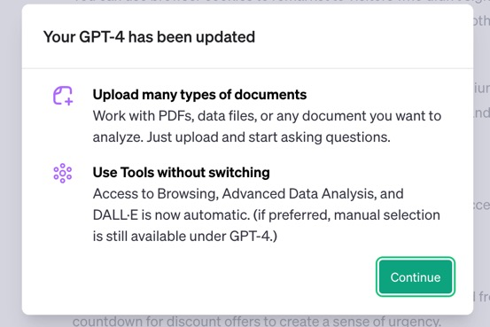 ChatGPT/GPT-4 迎来重要更新:可上传任意 PDF 文档并询问其内容。无需切换聊天即可直接使用新工具。